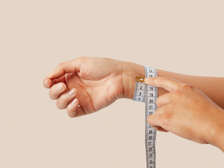 Wrap a flexible measuring tape around your wrist. If you don’t have one, a strip of paper or string works too. Make a note of the measurement to cross reference against the bracelet's dimensions.